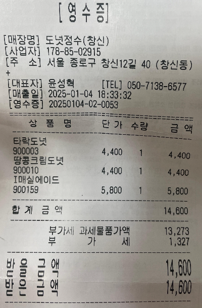 도넛장수 (창신) 실사 메뉴