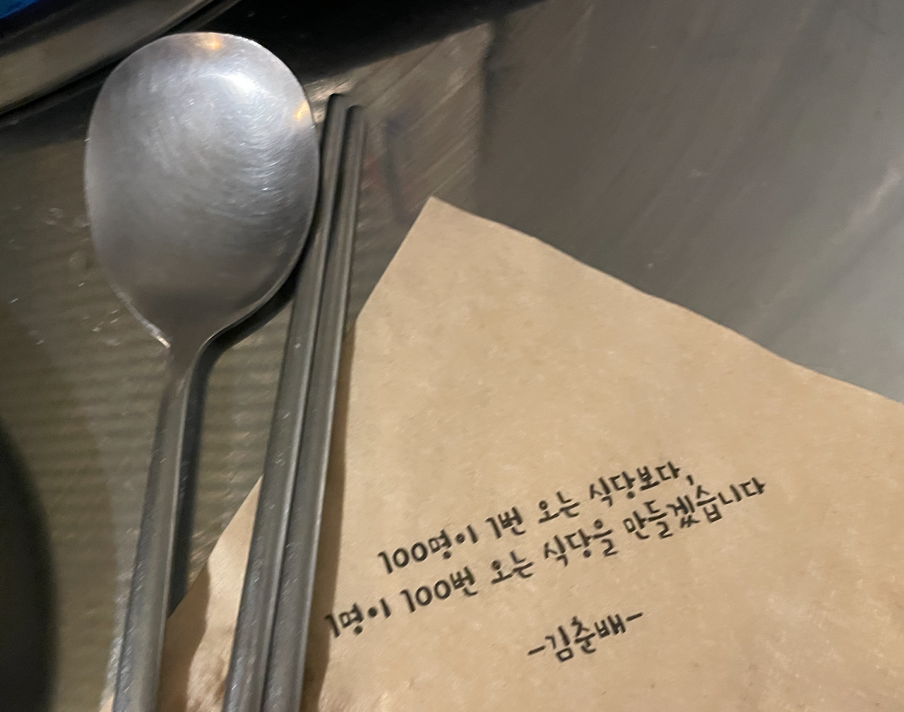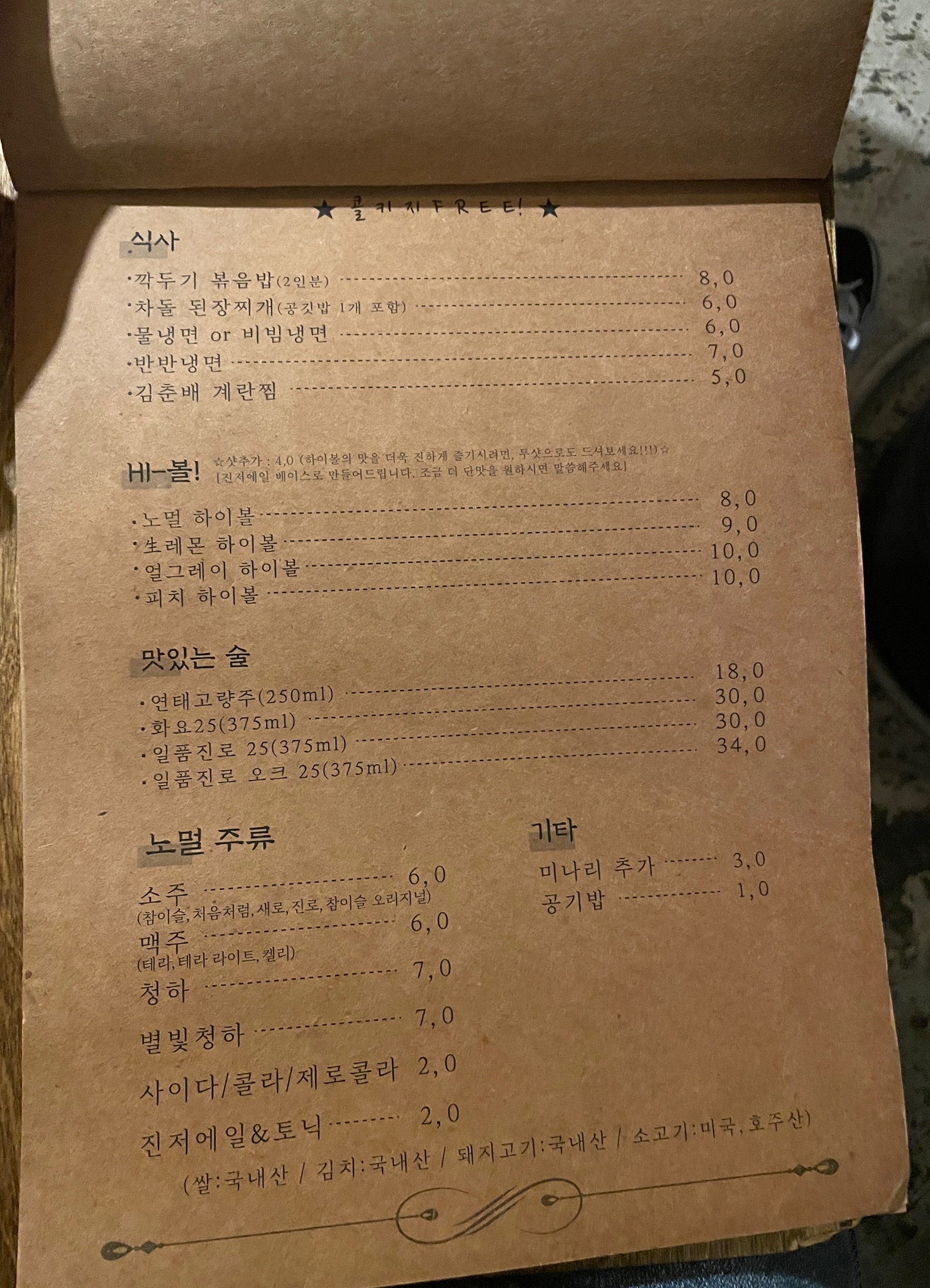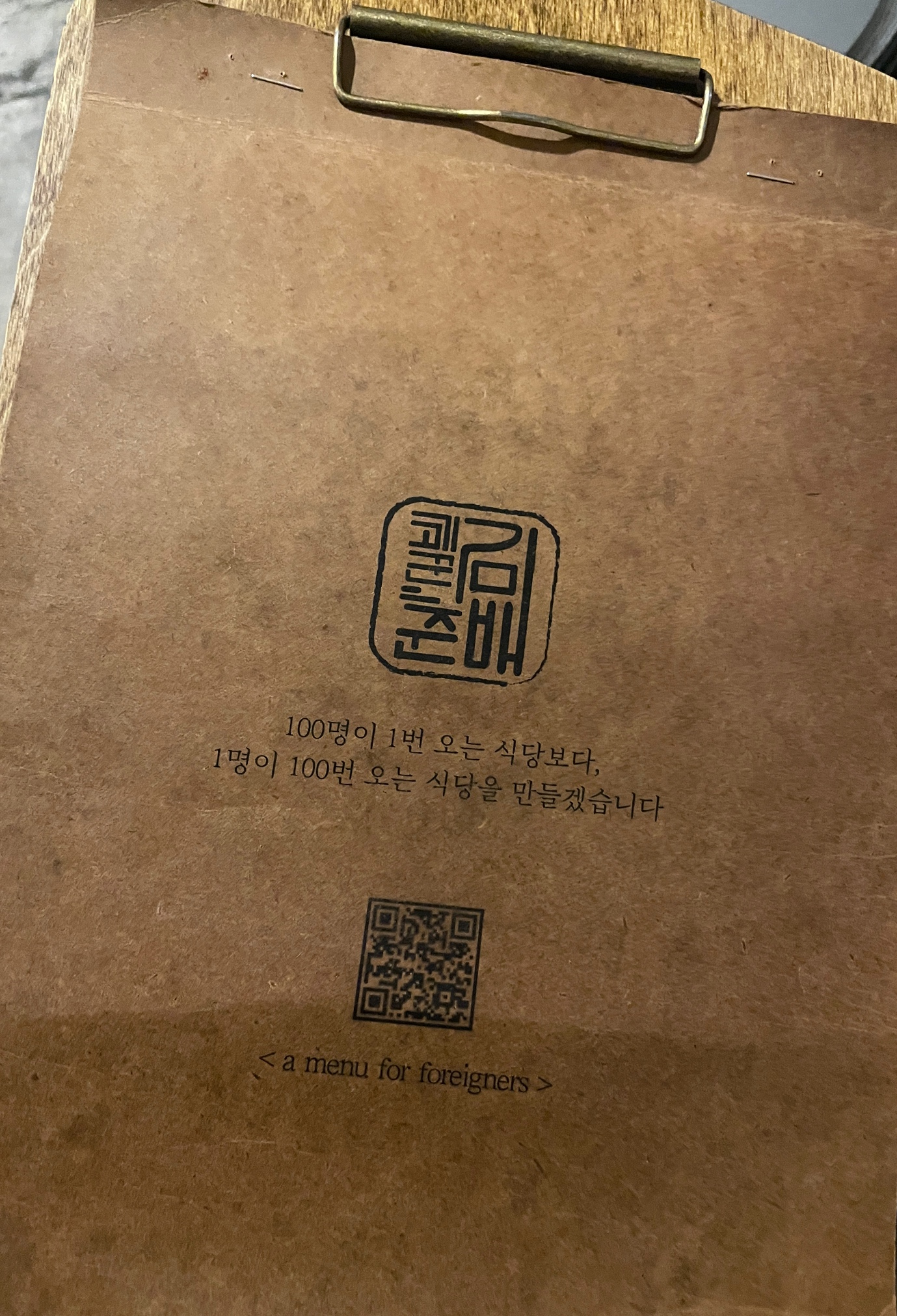 고기꾼김춘배 외관은 나무로 된 정감 가고 아늑한 느낌의 외관이었고 내부로 들어가면 편안한 노포 감성의 인테리어이다. 천장이 낮아 더 아늑하고 편안한 분위기였다. 창가 쪽은 경의선 숲길이 바로 보여 예쁜 풍경을 보며 먹을 수 있다. 곧 다가올 봄에 창가 쪽에 앉음 너무 기분이 좋을 거 같다. 봄에도 고기 먹으러 고기꾼 김춘배에 방문해 봐야겠다. 고기를 먹고 부푼 배를 이끌고 걸어도 좋은 경의선 숲길에 위치한 고기꾼 김춘배 홍대숲길점 리뷰 끝_.